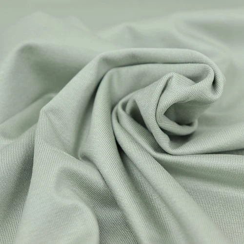 BASIC STRETCH JERSEY aus Tencel™ Lyocell Fasern ist ein exklusives, glattes und seidig weiches Single Jersey Gestrick von meet MILK. Der mintgrüne Stoff hat eine sehr feine marmorierte, glänzende Textur und eine kuschelweiche Oberfläche.