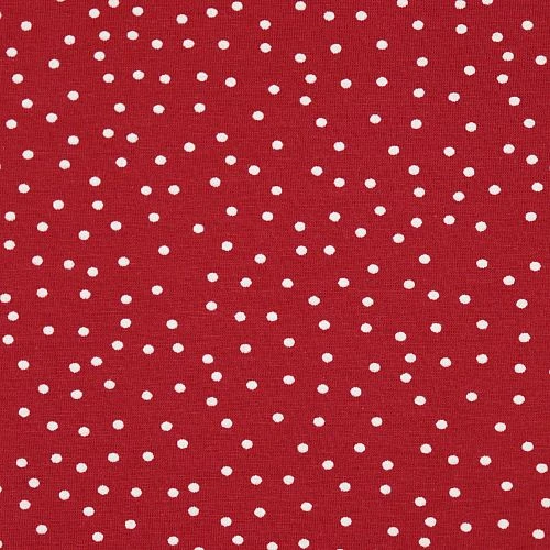Deinen kirsch roten Jersey mit weißen Punkten kannst du bequem und günstig online kaufen. Da wir deine Bestellung innerhalb von 24h versenden, kannst du schon nach wenigen Tagen deine neuen Streichelstoffe vernähen.