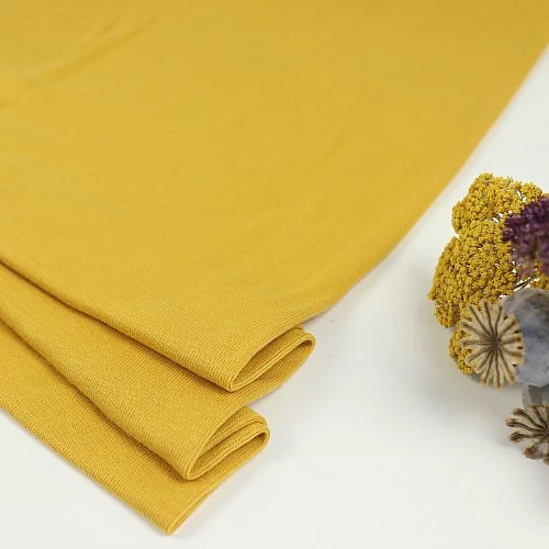 Solo macht der bernsteinfarbene Rib Jersey Shirts, Blusen und leichte Pullover zu einem Highlight.